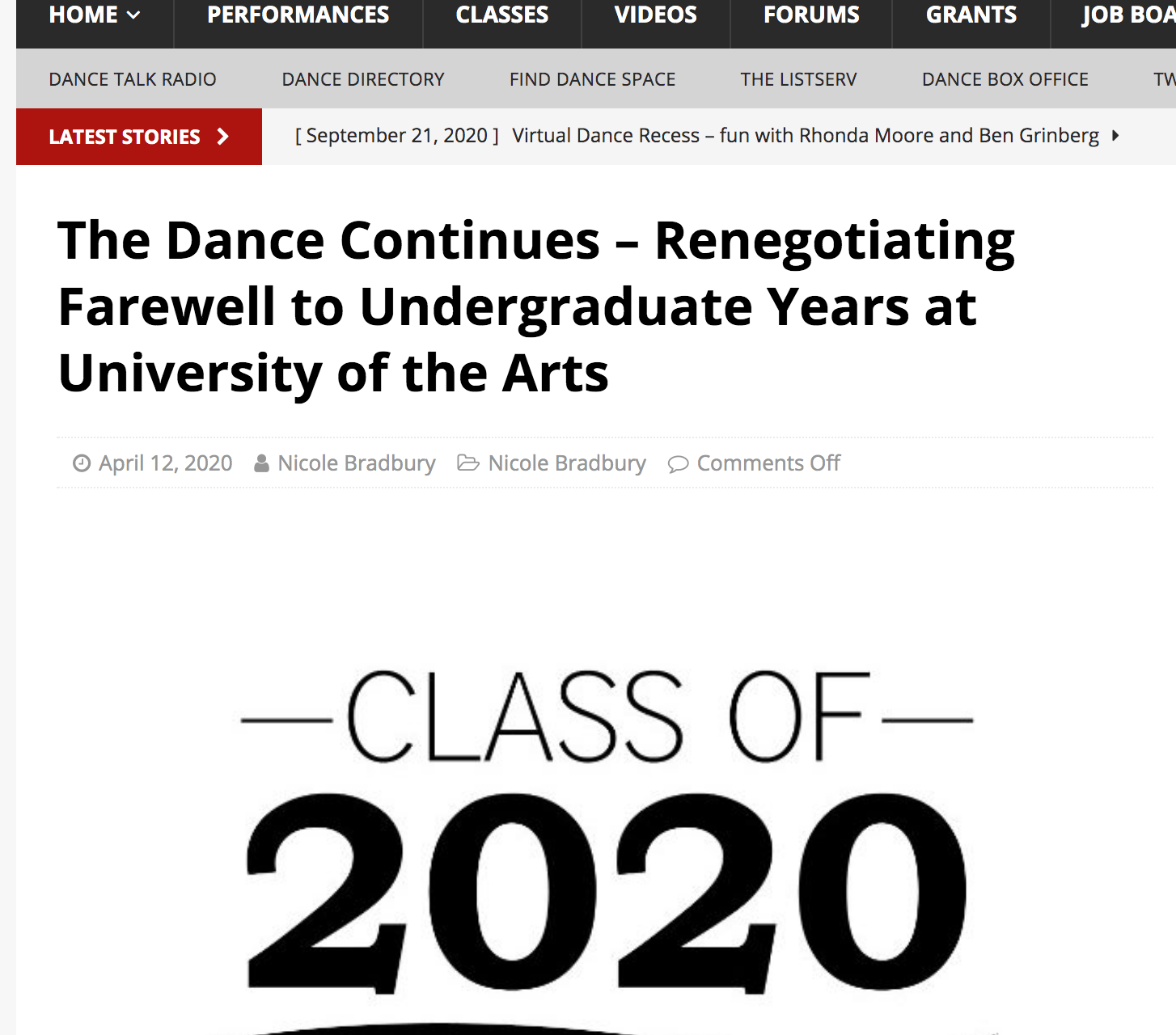Article, published on The Philadelphia Dance Journal / March 17, 2020